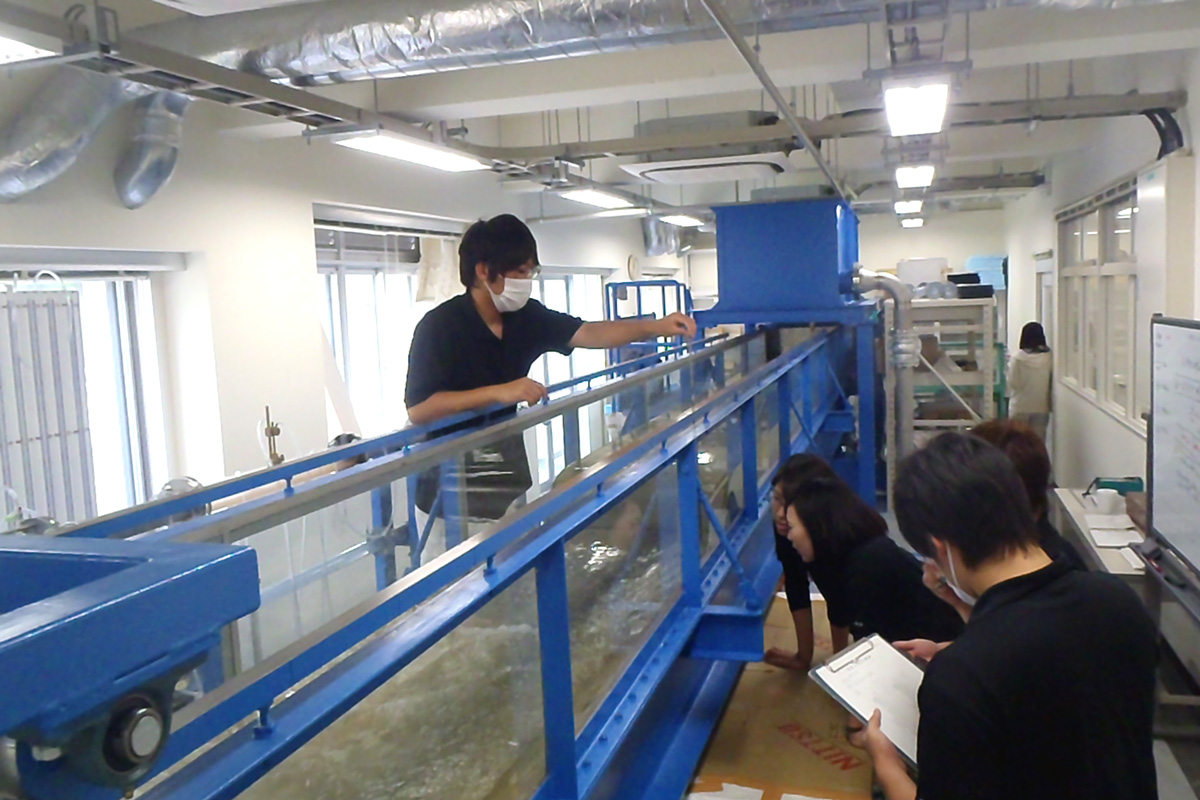 最初の段階は、設計製図と実験実習を通して、土木・建築に関する基礎理論である構造力学、水理学、地盤工学、環境衛生工学、建築計画、建築環境を修得することです。次に、その応用として、防災、耐震、治水、災害復旧、生態系保全、環境影響評価、建築設備、建築意匠などの技術を身に付けます。さらに、持続可能な地域の構築の道筋を提示するための考え方についても学びます。