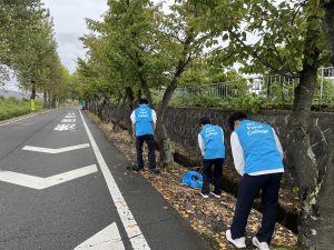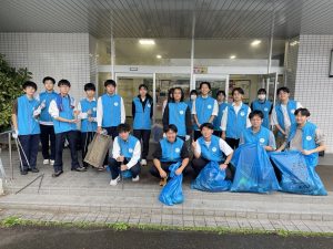 学生会厚生部門の学生を中心に、構内および学校周辺道路の清掃活動を行いました。
