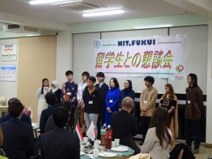 令和7年12月5日(金)に、鯖江市国際交流協会の皆さまをお迎えし、長谷川校長をはじめ外国人留学生11名・チューター・教職員を含む、総勢39名による懇談会を開催しました。
