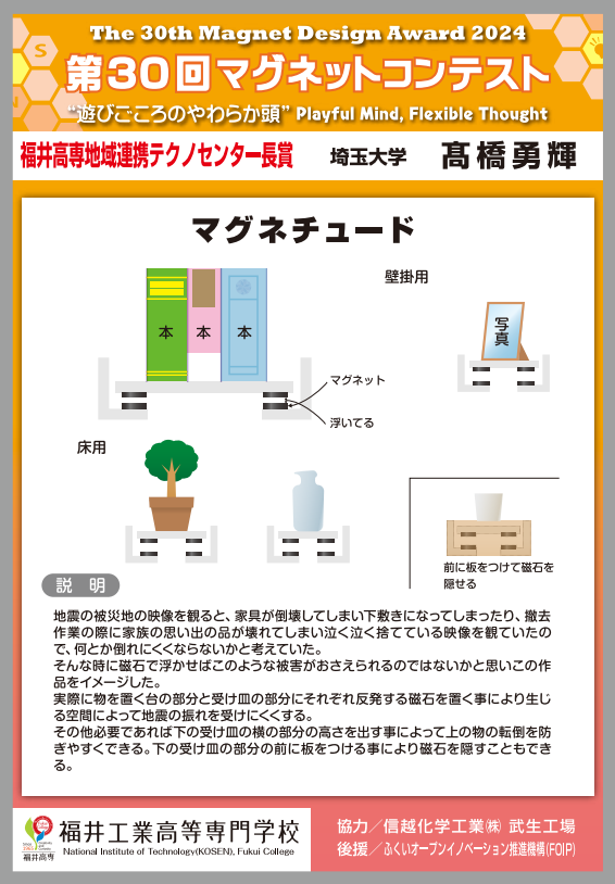 | 福井高専地域連携テクノセンター長賞 | マグネチュード | 埼玉大学 |