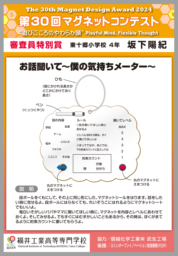 | 審査員特別賞 | お話聞いて~僕の気持ちメーター~ | 東十郷小学校 4年 |