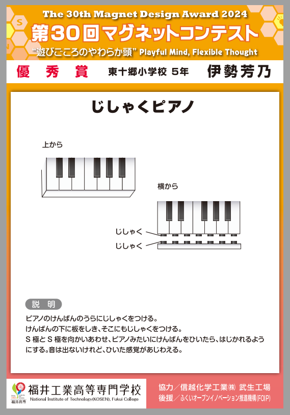 | 優秀賞 | じしゃくピアノ | 東十郷小学校 5年 |