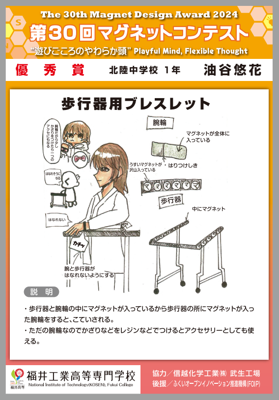 | 優秀賞 | 歩行器用ブレスレット | 北陸中学校 1年 |