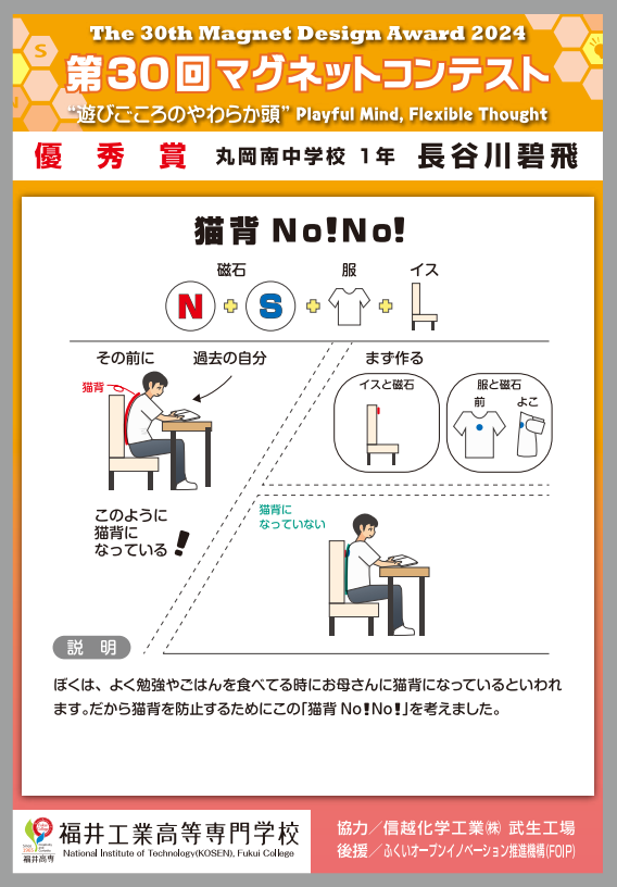| 優秀賞 | 猫背No!No! | 丸岡南中学校 1年 |