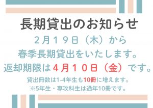 ※卒業生・修了生は対象外で、返却期限は2月24日(火)です。
