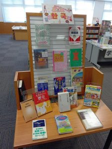図書館では、韓国の文化や歴史、文学などに関連する本を中心に集めて展示しております。
