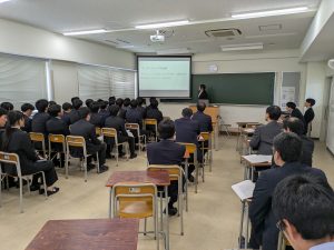 機械工学科2年生を対象とした先輩フォーラムを実施しました.今年は,機械工学科5年生から3名,専攻科2年生から1名の先輩たちが参加し,2年生に向けて高専生活をより良いものとするための話をしてくれました.機械工学科の特徴や自身の経験を踏まえた勉強法,進路の話など,後輩の助けとなる貴重な経験談を話してくれました.