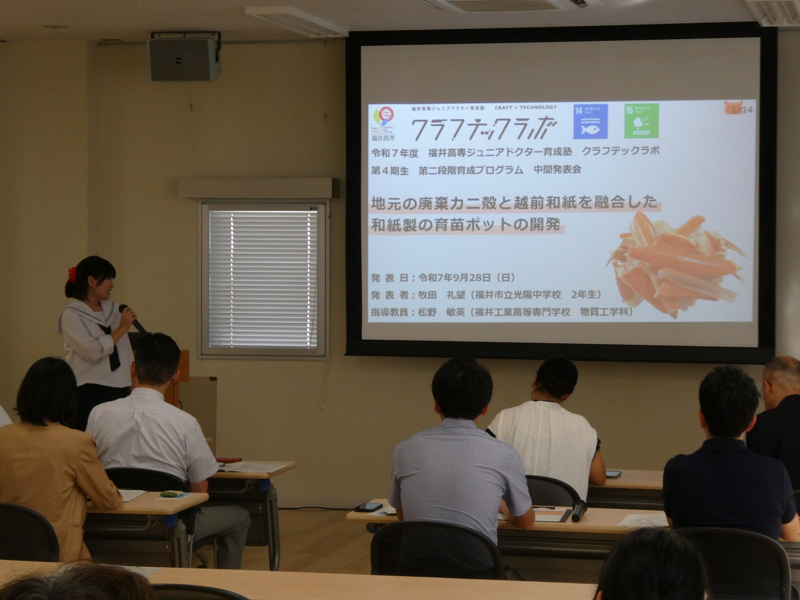 令和7年9月28日(日)、福井高専クラフテックラボ第4期生による第2段階の中間発表会が開催されました。本発表会では、