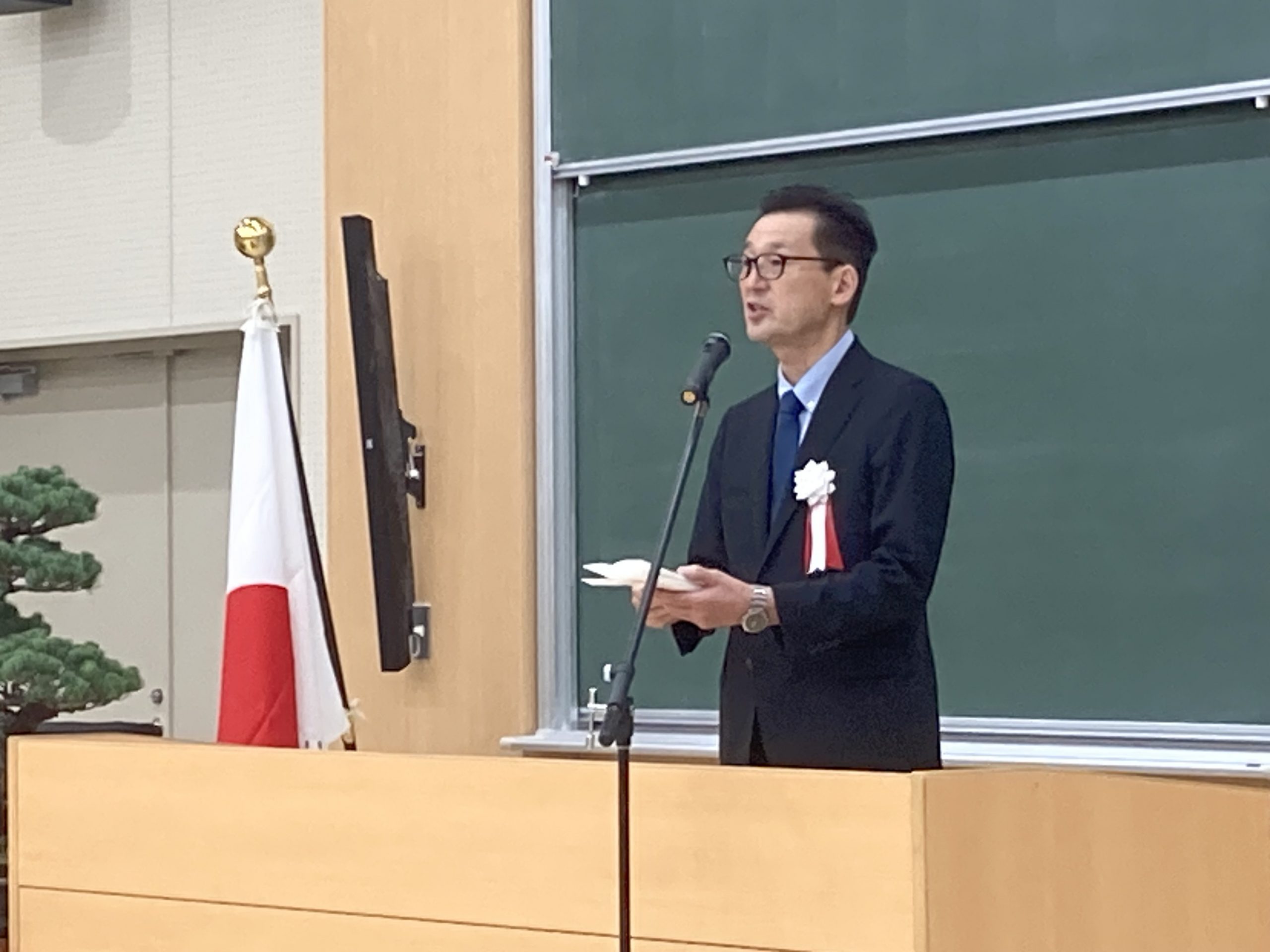 会場には教職員と来賓が参列し、学生およそ1,000名は各教室から会場の配信を視聴しました。御来賓からは今後の福井高専に期待するお言葉をかけていただき、講師の岩堀様からは学生諸君のキャリアを考える上でたいへん貴重な御講演をいただきました。
