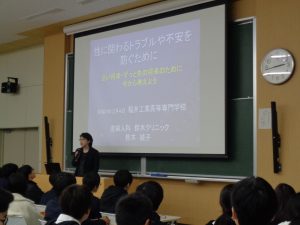 12月4日(木)、本校大講義室にて、産婦人科 鈴木クリニック副院長の鈴木綾子先生を講師にお迎えし、1年生を対象とした「性」に関する講演会を開催しました。