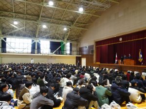 続けて校長及び学生主事からのお話があり、学生らは真剣に聞き入っていました。