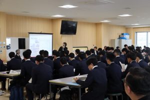 令和8年4月5日(日)、学生寮食堂において令和8年度入寮式を挙行しました。入寮式では新入生65名、在校生4名、タイ・モンゴル・マレーシアからの外国人留学生3名の計72名に対し、上田校長が入寮許可宣言を行いました。その後、校長、寮務主事及び男女寮生代表挨拶、学寮生活についてのオリエンテーションが実施され、学寮での新たな生活をスタートさせました。
